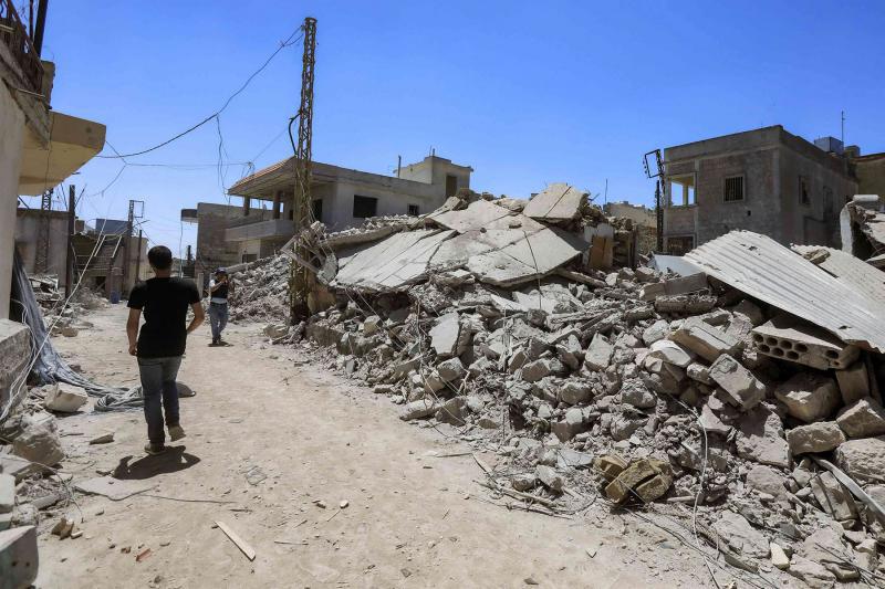 أنقاض مبنى دمره القصف الإسرائيلي في يارون الجنوبية يونيو 2024 ( أ ف ب)
