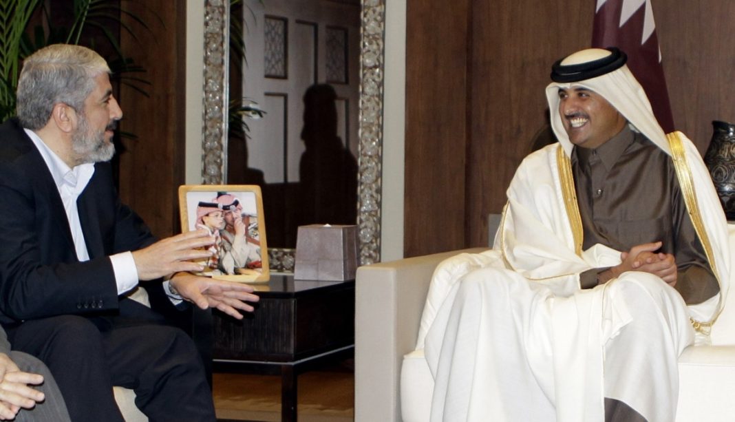 If anyone needs to apologize, it is Qatar, which has long been financing, hosting, and advocating for Hamas and other Islamist terror groups such as the Islamic State (ISIS) and Al-Qaeda. Pictured: Hamas leader Khaled Mashaal meets with Qatar’s then Crown Prince (today’s Emir) Sheikh Tamim bin Hamad al-Thani at the Royal Palace in Amman, Jordan on January 29, 2012.
