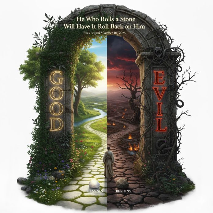 ما تزرعه اليوم، ستحصده غداً. وما تؤذي به غيرك، سيعود عليك أضعافاً. ومن يدحرج حجراً لأذيّة الآخرين، سيرتدّ عليه الحجر يوماً ما. ***الكاتب ناشط لبناني اغترابي رابط موقع الكاتب الإلكتروني https://eliasbejjaninews.com عنوان الكاتب الإلكتروني phoenicia@hotmail.com