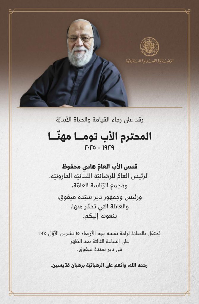 في دير سيدة ميفوق يمضي ما تبقى من العمر «فالموت يقترب واللقاء مع يسوع سعادته». هو من الرهبان الذين وثقوا طوال العمر بأن من شاهد الحق وعاينه ولم يشهد له، فكأنه لم يشاهده ولم يرَه. الشهادة للحقّ لازمته، كما الظلّ، وكبُر في عالمٍ معقود بين حبّ ونيران، بين سلام منشود وحرب منصوبة، وبين بعدين زمني وروحي. فما حكاية هذا الراهب الذي يُحرّك إسمه شجون الكثيرين؟