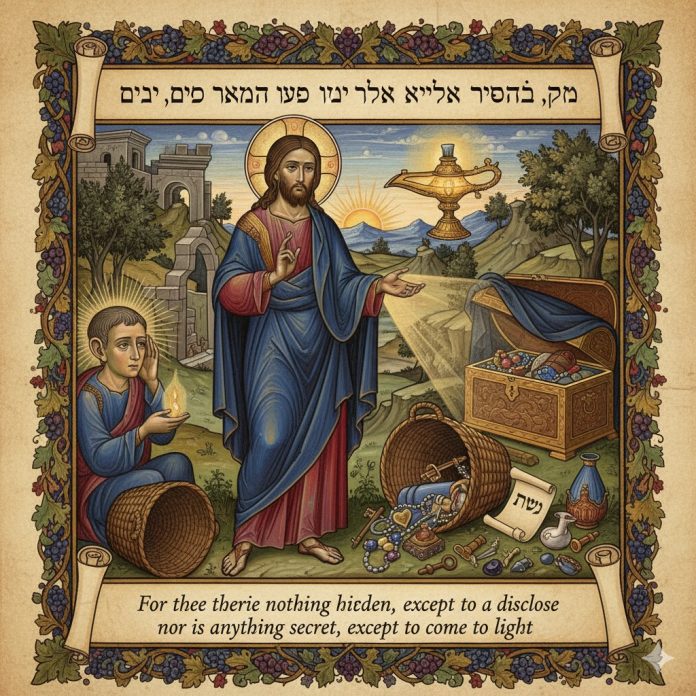 For there is nothing hidden, except to be disclosed nor is anything secret, except to come to light Holy Gospel of Jesus Christ according to Saint Mark 04/21-25: “The Lord Jesus says: ‘Is a lamp brought in to be put under the bushel basket, or under the bed, and not on the lampstand? For there is nothing hidden, except to be disclosed; nor is anything secret, except to come to light. Let anyone with ears to hear listen!’ And he said to them, ‘Pay attention to what you hear; the measure you give will be the measure you get, and still more will be given you. For to those who have, more will be given; and from those who have nothing, even what they have will be taken away.’”.