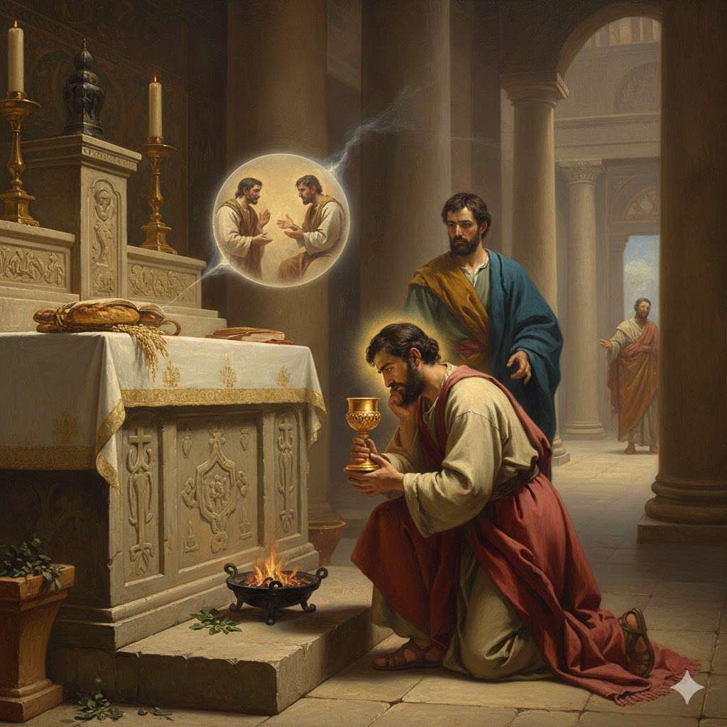 when you are offering your gift at the altar, if you remember that your brother or sister has something against you, leave your gift there before the altar and go; first be reconciled to your brother or sister, and then come and offer your gift