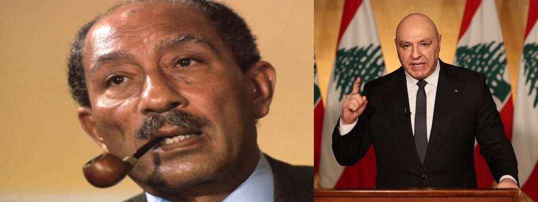 يشبّه البعض الموقف الجريء للمغفور له الرئيس أنور السادات يوم قرر التوجه للسلام مقابل الأرض بموقف الرئيس عون الحالي يوم قبل التفاوض مقابل وقف اطلاق النار. وقد هدد حزب إيران الرئيس عون بمصير مشابه لمصير الرئيس المصري في حال تجرؤه على اتخاذ أي خطوة باتجاه الاجتماع برئيس وزراء “العدو”، كما يسمي هؤلاء رئيس وزراء اسرائيل السيد نتانياهو. ولكن ما هي أوجه الشبه بين موقفي الرجلين وما هو الوضع الحقيقي الذي يعيشه لبنان والذي دفع الرئيس عون إلى طرح موضوع التفاوض المباشر (لأنه لم يجرؤ بعد على طرح السلام بشكل واضح كما فعل يومها الرئيس السادات)؟